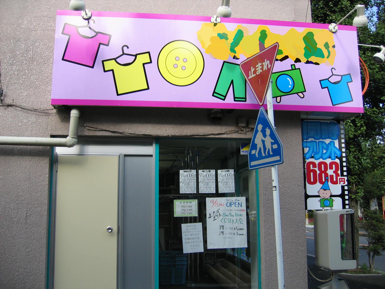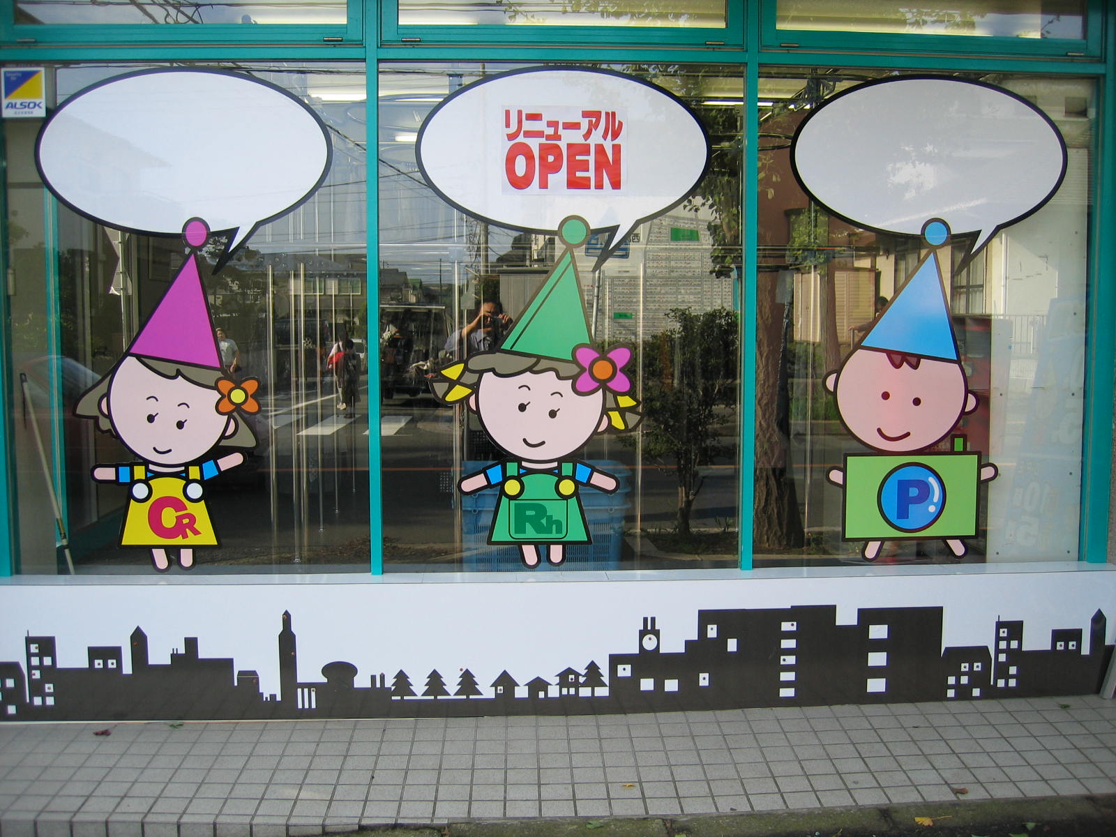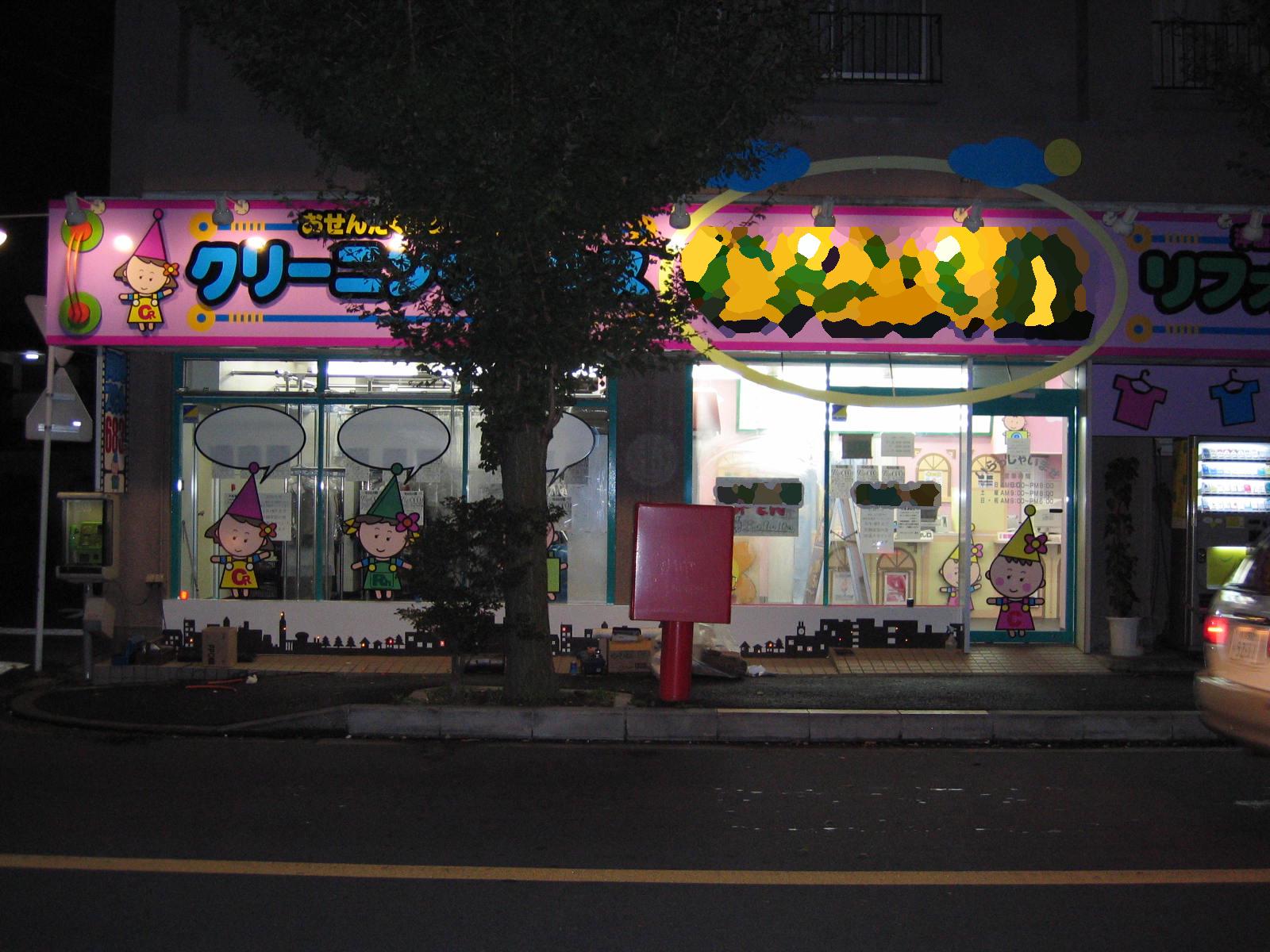 ○お店で取り扱っている、服やカメラのサービスが一目で分かる様にと、自動販売機の後ろに立体的な看板を付けました。 |