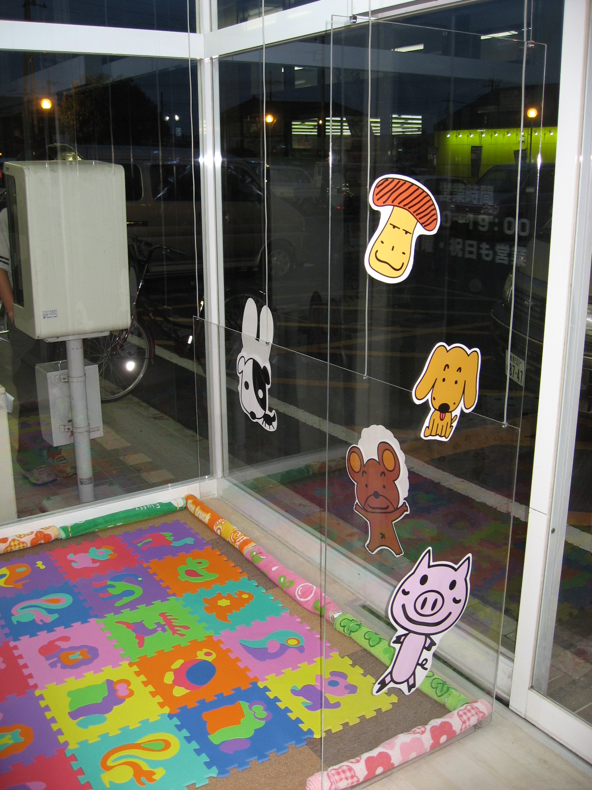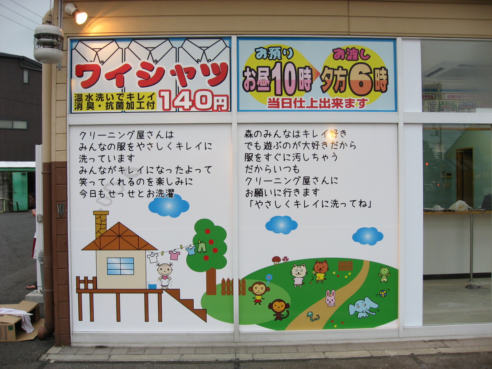 ○正面左下には絵本の1ページのようなシートを貼り、上部にはお客様向けのアピールをしました。 |