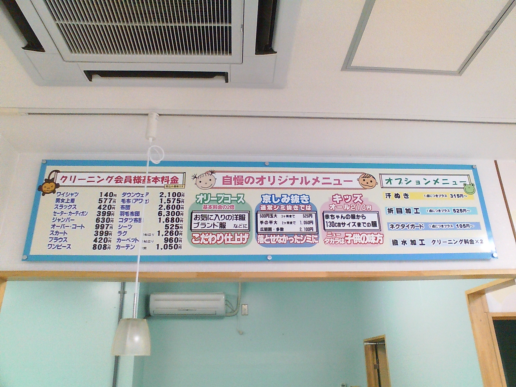 ○店内の料金表は壁面から浮かし、立体感を出しました。 |