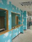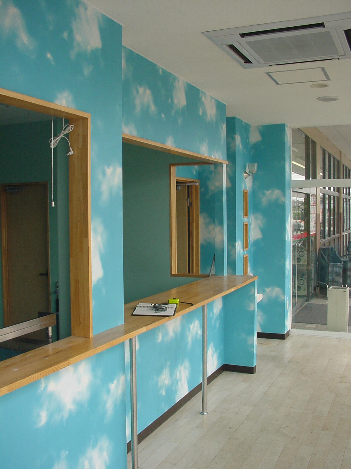 ○店内を二つに受付スペースと集配スペースに区切る壁。