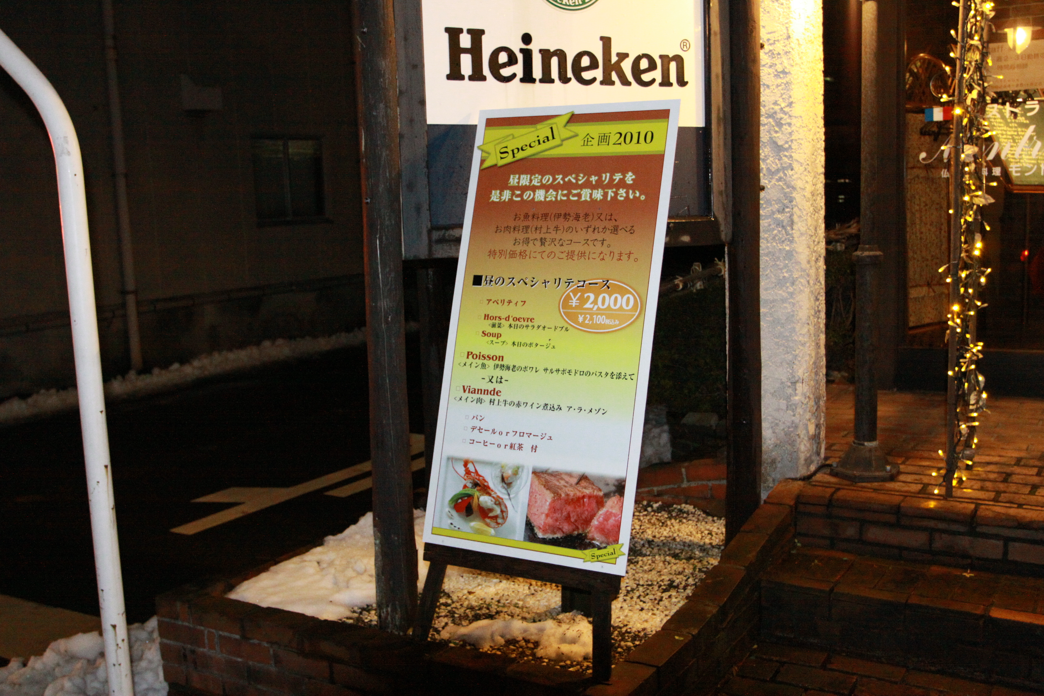 ○モントルー様のコース料理の看板です。舌がとろけてしまうほど美味しいですよ!!! |