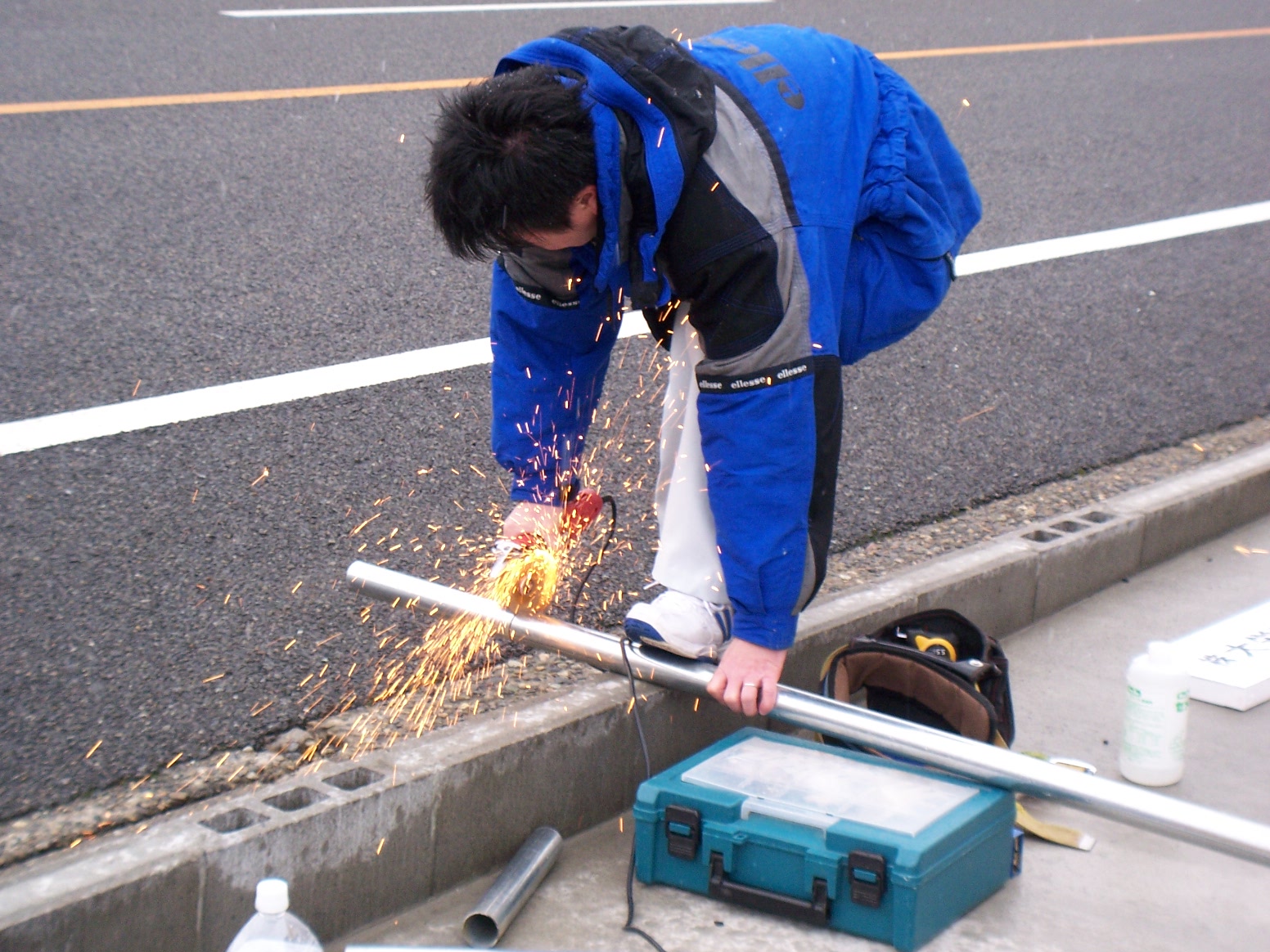 ○パイプを削っていきます。長さを間違えないよう、慎重に作業を行います。