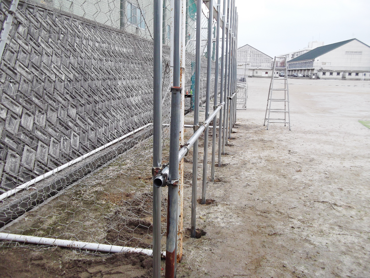 ○使わなくなったサッカーゴールを利用してストライクボードを取り付けます。