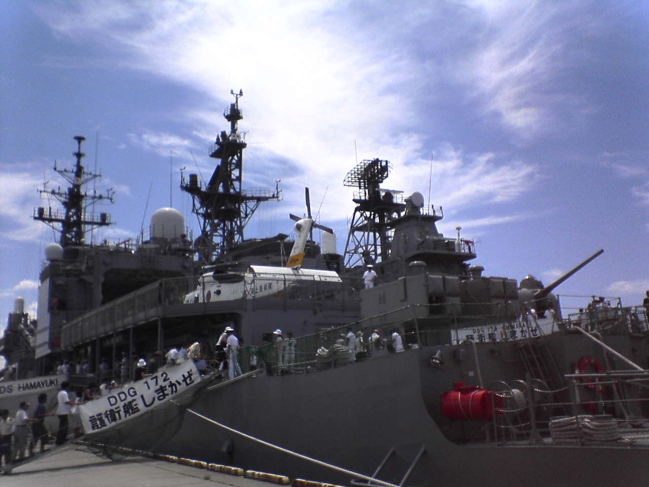 さてさて、写真の説明ですが右上が護衛艦「はまゆき」と「しまかぜ」です。私達が乗ったのは写真の奥のヘリコプターを搭載していない「しまかぜ」です。