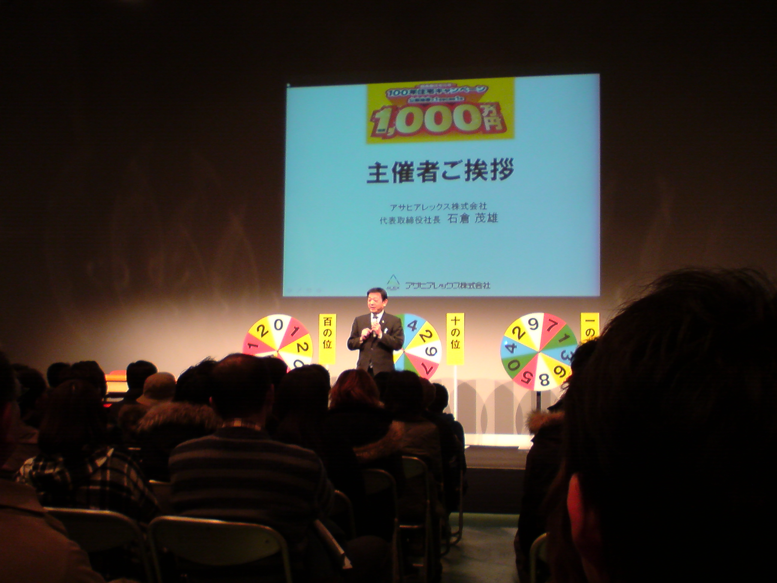 「夢がない世の中に少しでも夢を与えたい」という事で今回のビッグ抽選会を開いたとの事でした。