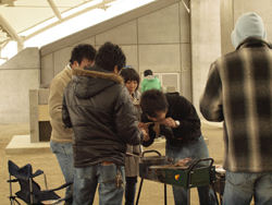 それがビッグスワンの横のスポーツ公園とやらでコンロを三つ囲み、肉を食べ、酒を飲み、歌い、踊り、そして最後は浪曲で締める。