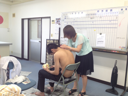最後の産毛剃り、以前は指の間にカミソリを2〜3枚挟んでいたという噂がある社員にお願いしました。