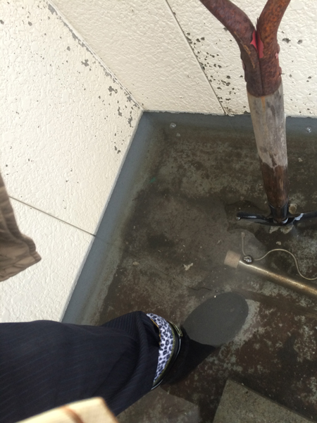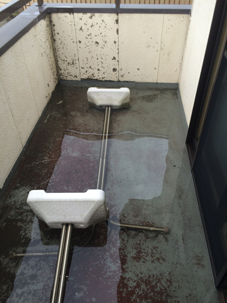 排水溝を探したものの見つからず、しばらくバケツで水を汲み出していました。