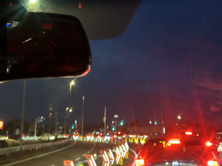 紫竹山インターの降り口で車が詰まっていたのが少し気になりましたが「まあ、合流で少し詰まっているだけだろう」と思って、その渋滞の後ろに着く。