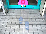 ○キャラクターは自動ドアの縁に腰掛けています。 |