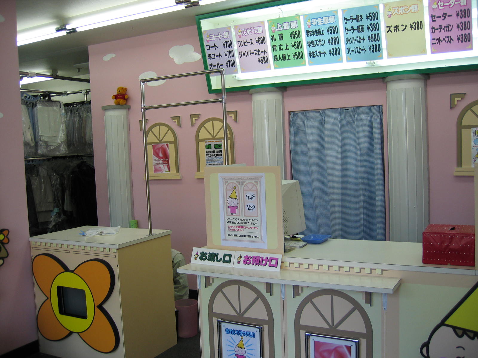○カウンターとカウンターの間に、お客様にお渡しする衣類などをかけられるバーを 作りました。 |