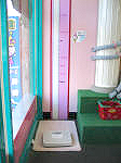 ○ただの身長計では測る楽しみがないため、アニメのキャラクターの身長も入っています。手前には体重計もおいてあります。 |