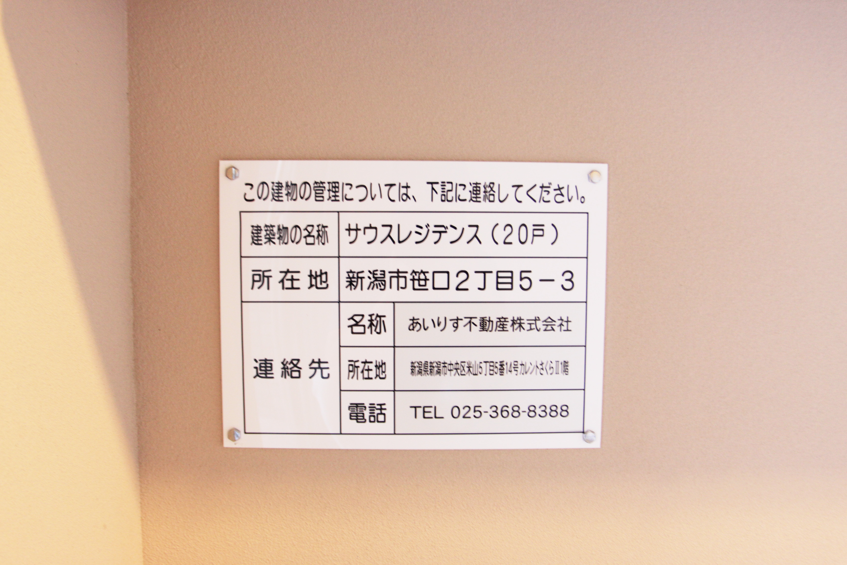 ○サウスレジデンスの管理看板を設置します。 |