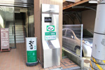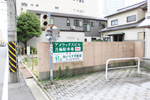 ○写真正面の緑色の駐車場看板を製作いたしました。 |
