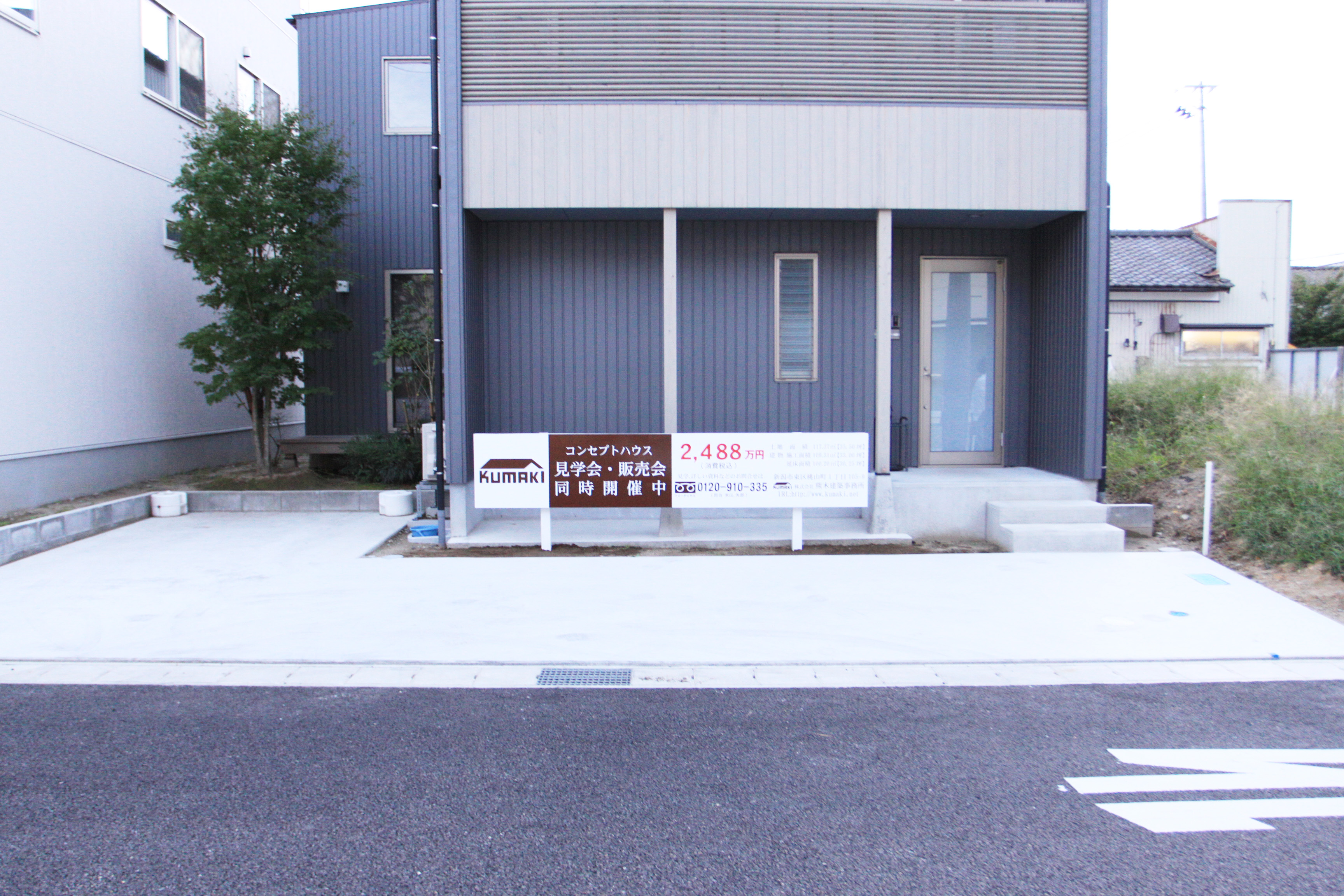 ○モデルハウスの外観の邪魔をしないように、このような形の看板を設置いたしました。