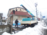 ○ユニックを使い下地となる鉄骨を上へ。 |