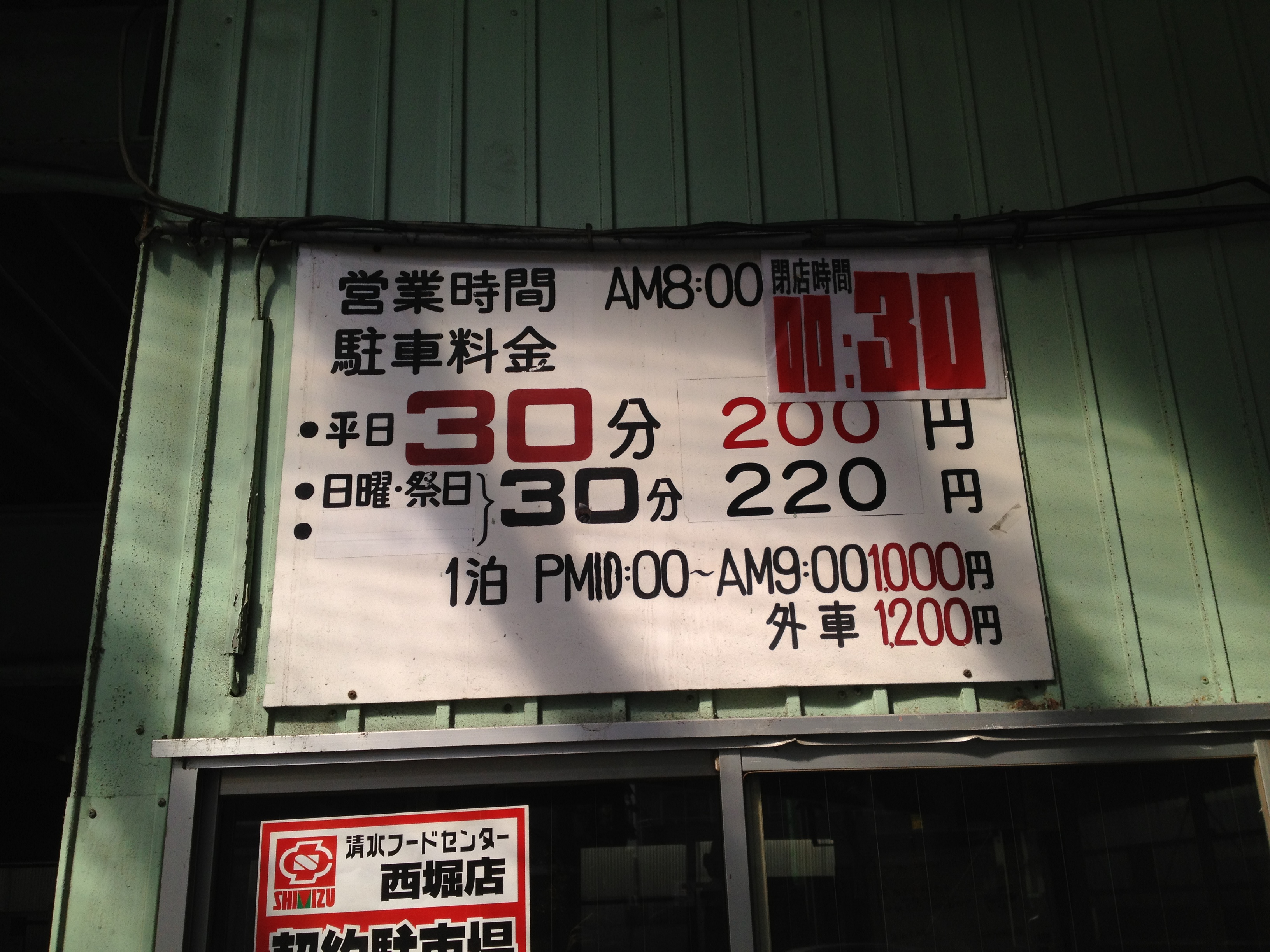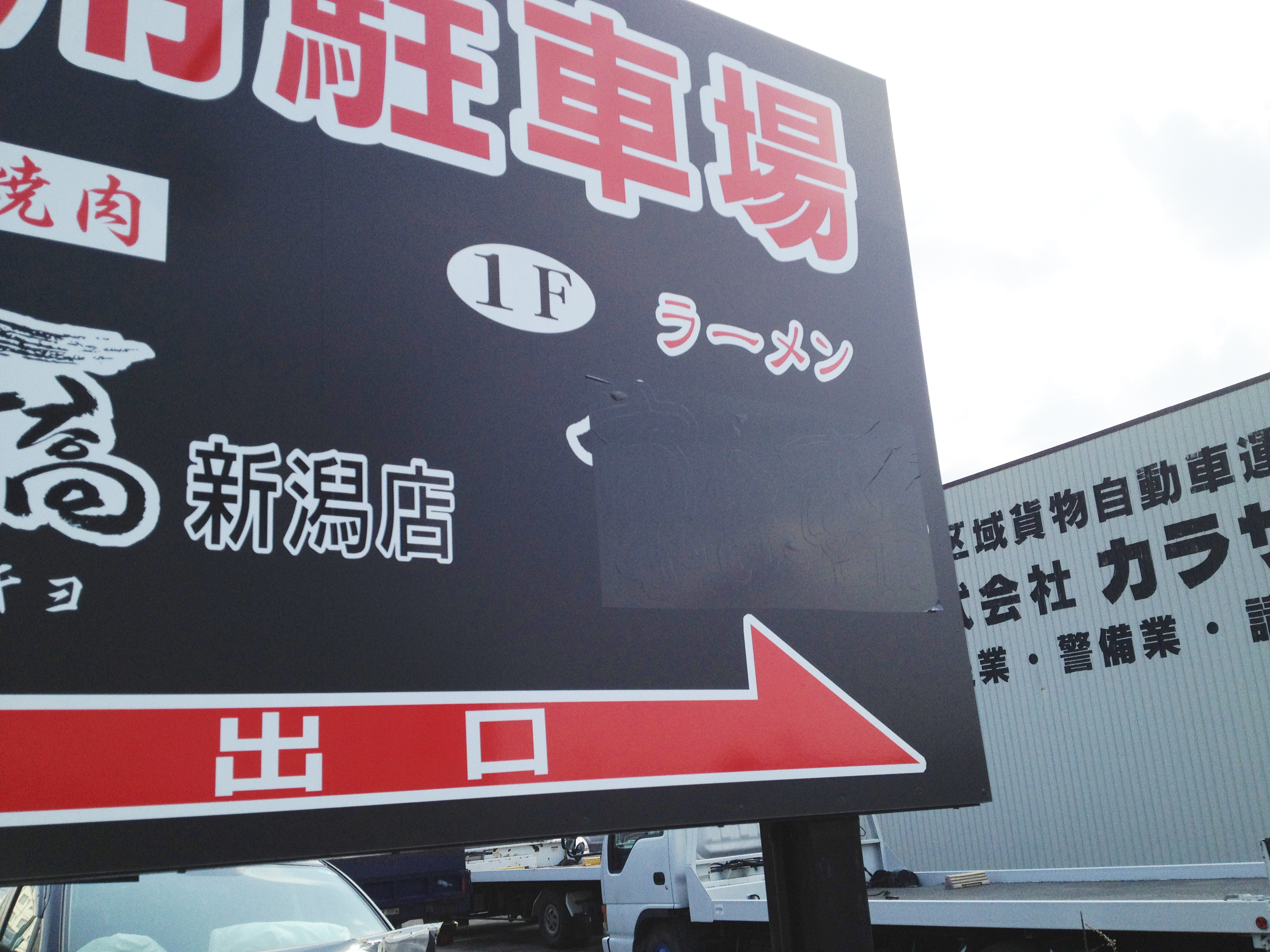 ○駐車場案内の部分にシート上貼り。 |