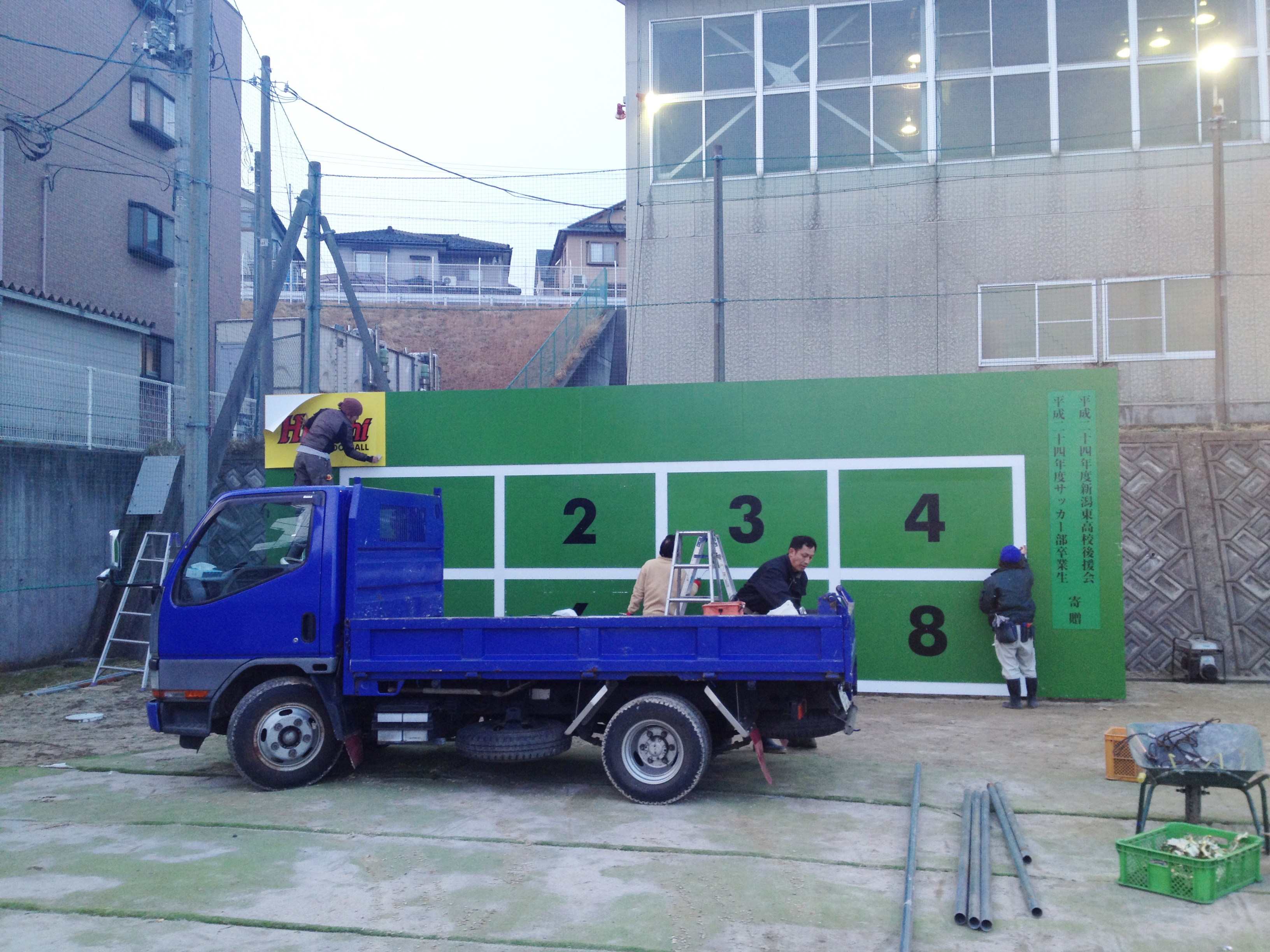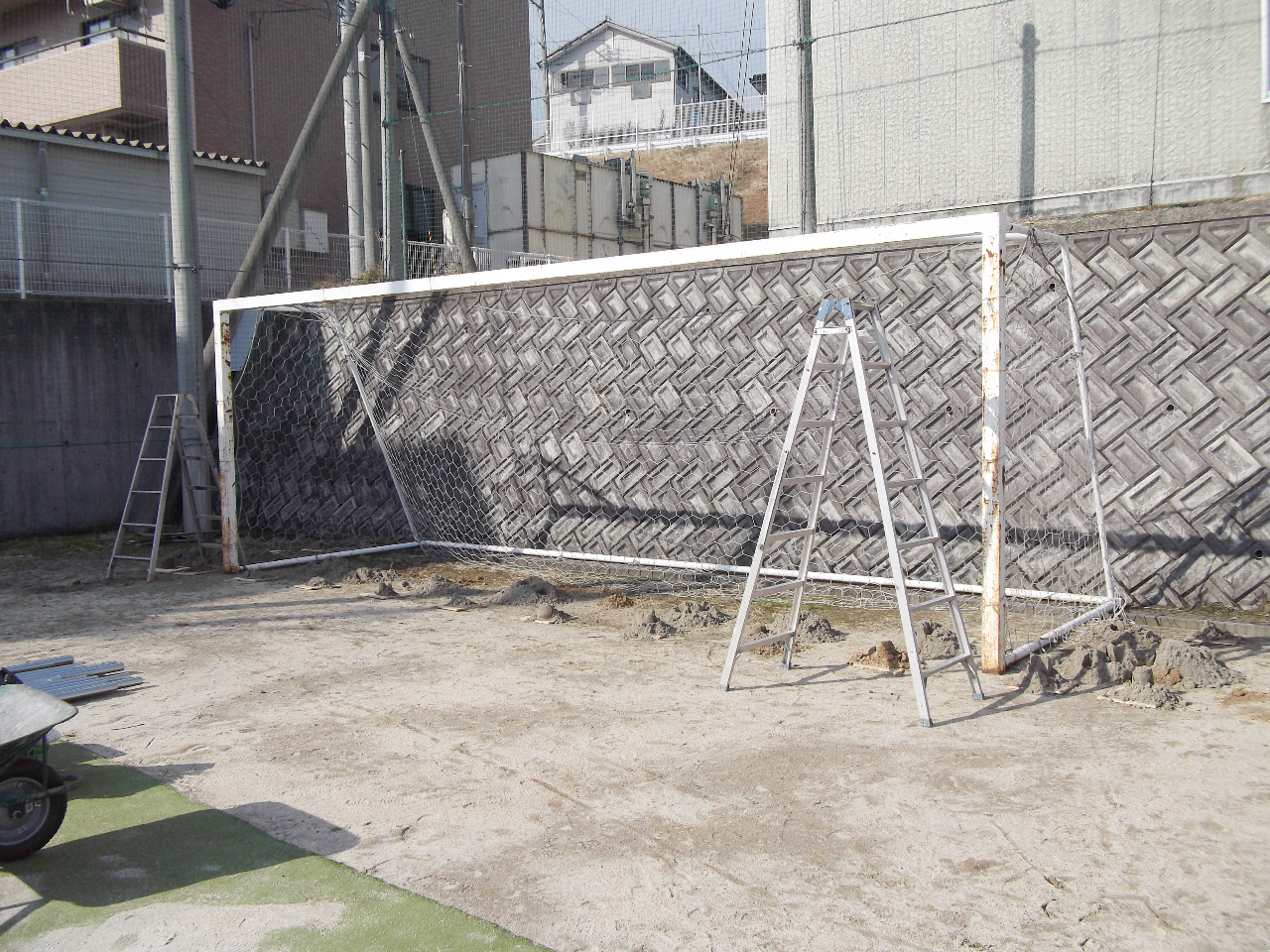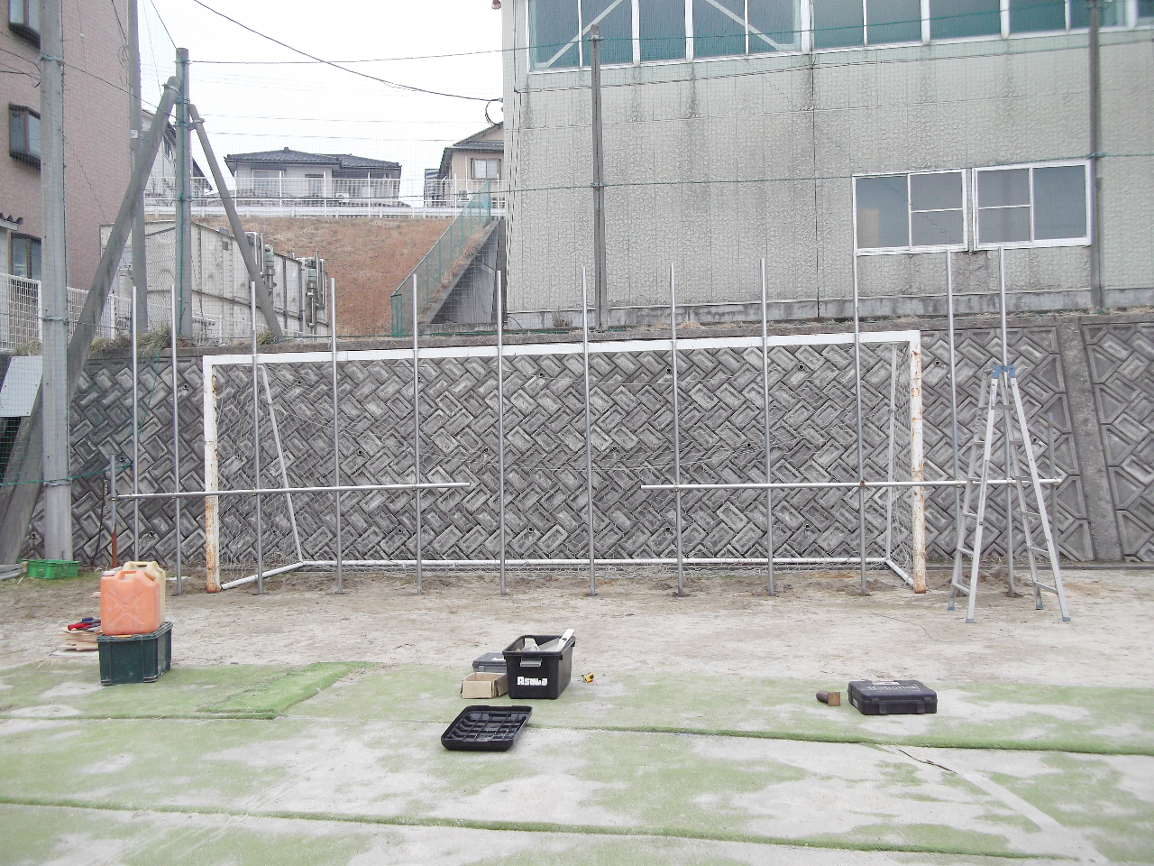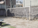 ○使わなくなったサッカーゴールを利用してストライクボードを取り付けます。