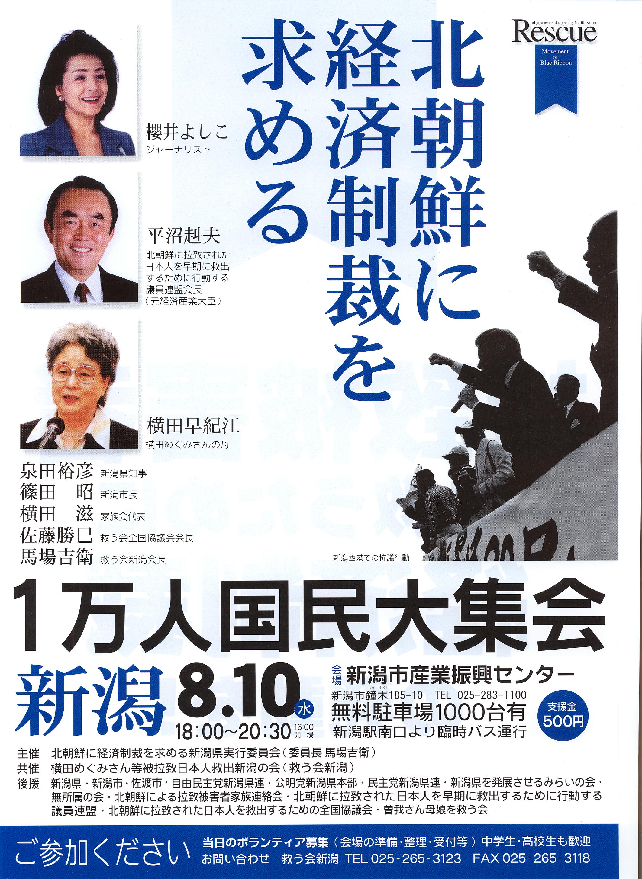 ところで、上記にも書きましたが、8月10日(水)に北朝鮮に経済制裁を求める「一万人国民大集会」が開かれます。