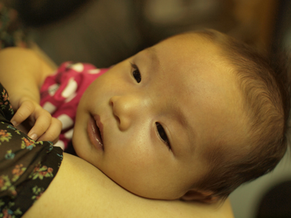 上手にミルクを飲ませています。