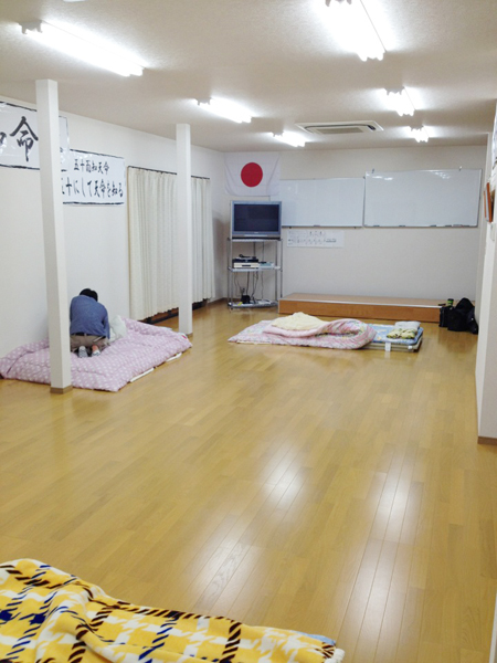 この広〜いリビングで三人(女性社員は二階へ)で寝ました。