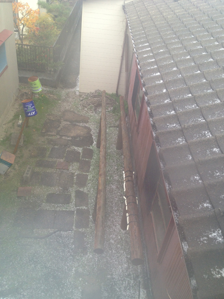 そんな風に「明日東京さ行ってべこ飼うかな〜」と考えていましたら、突如屋根に爆雷!?という様な音が。