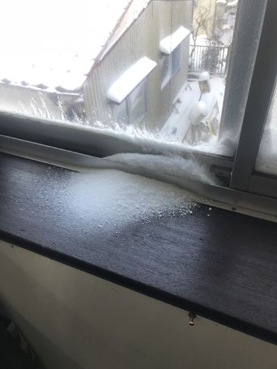 雪が入り込んで積もっていました。