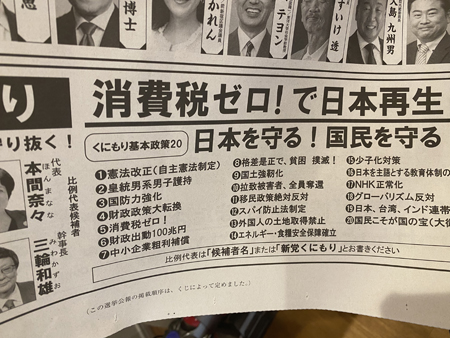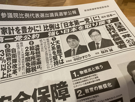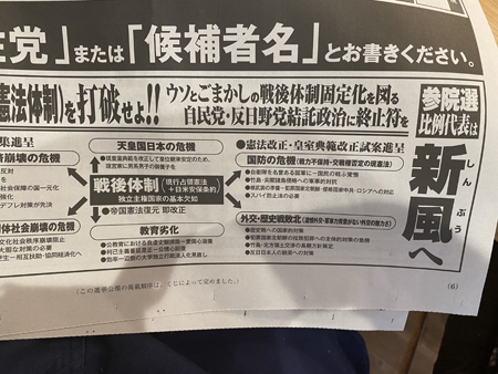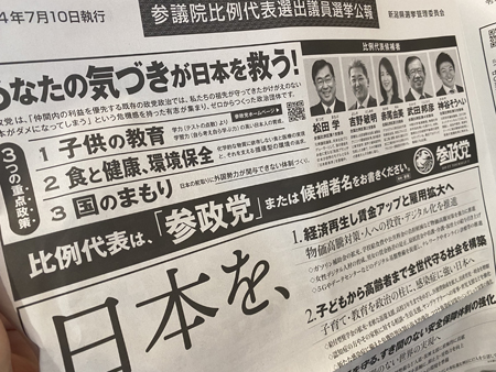 昨日帰宅したら机の上に新聞(?)の参議院選挙の広告(?)がありました。