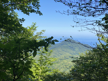 あの日本海に面した道路を通っているとずーっと右に見える「とんがった山」です。