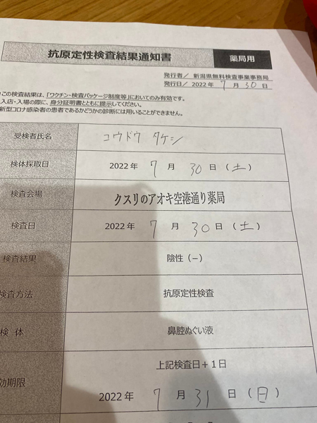ただ抗原定性検査を受けてですね・・・